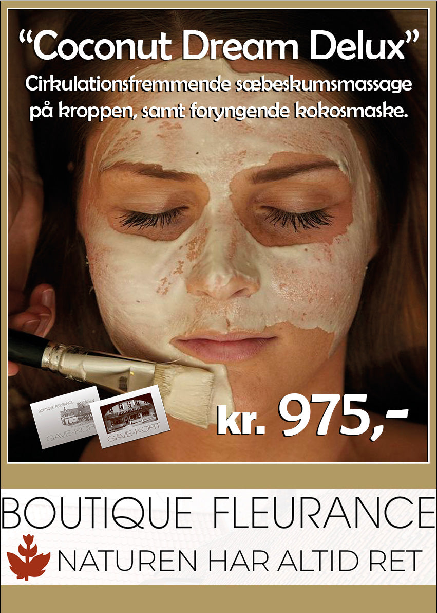 Denne lækre wellness-behandling er nærende for både krop og ansigt. Behandlingen byder på cirkulationsfremmende sæbeskumsmassage på kroppen, samt foryngende kokosmaske. Ansigt og dekolleté peeles og forkæles også med kokosmaske, samt varme urtebolde.